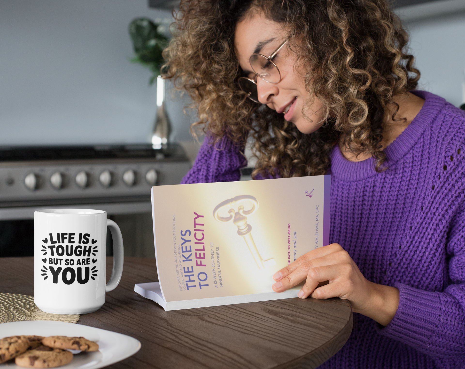 Designed to help you unpack what’s weighing you down and rediscover your inner strength, the Keys to Felicity Workbook is your personal space for reflection, healing, and growth. It’s more than pages—it’s a powerful starting point.